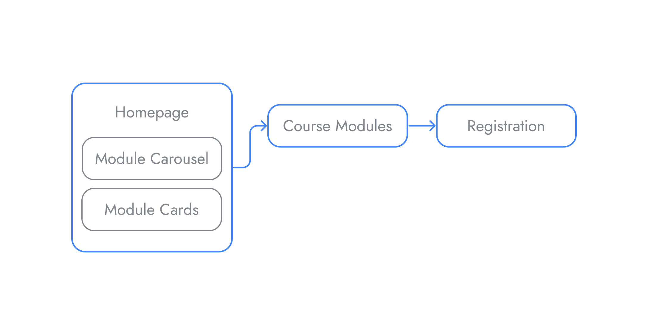 First time participants have the option to browse the modules offered and and look at the course list, while returning participants interested in the other modules could decide to look through the Upcoming Workshops tab or go straight into registration; users now have the agency to decide how they want to navigate the site so they can gain just the necessary information they seek to register.